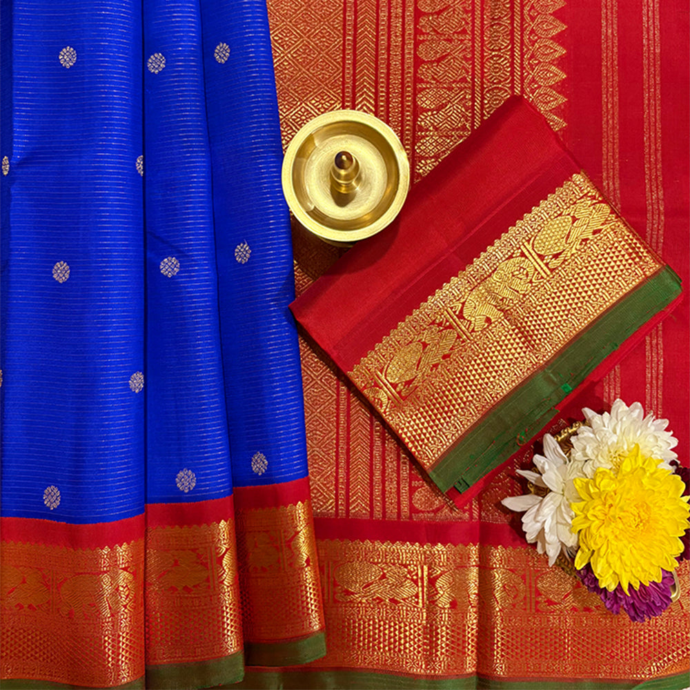 Sapphire Green Korvai Kanjivaram Silk Saree with Kanchana border - RK0535