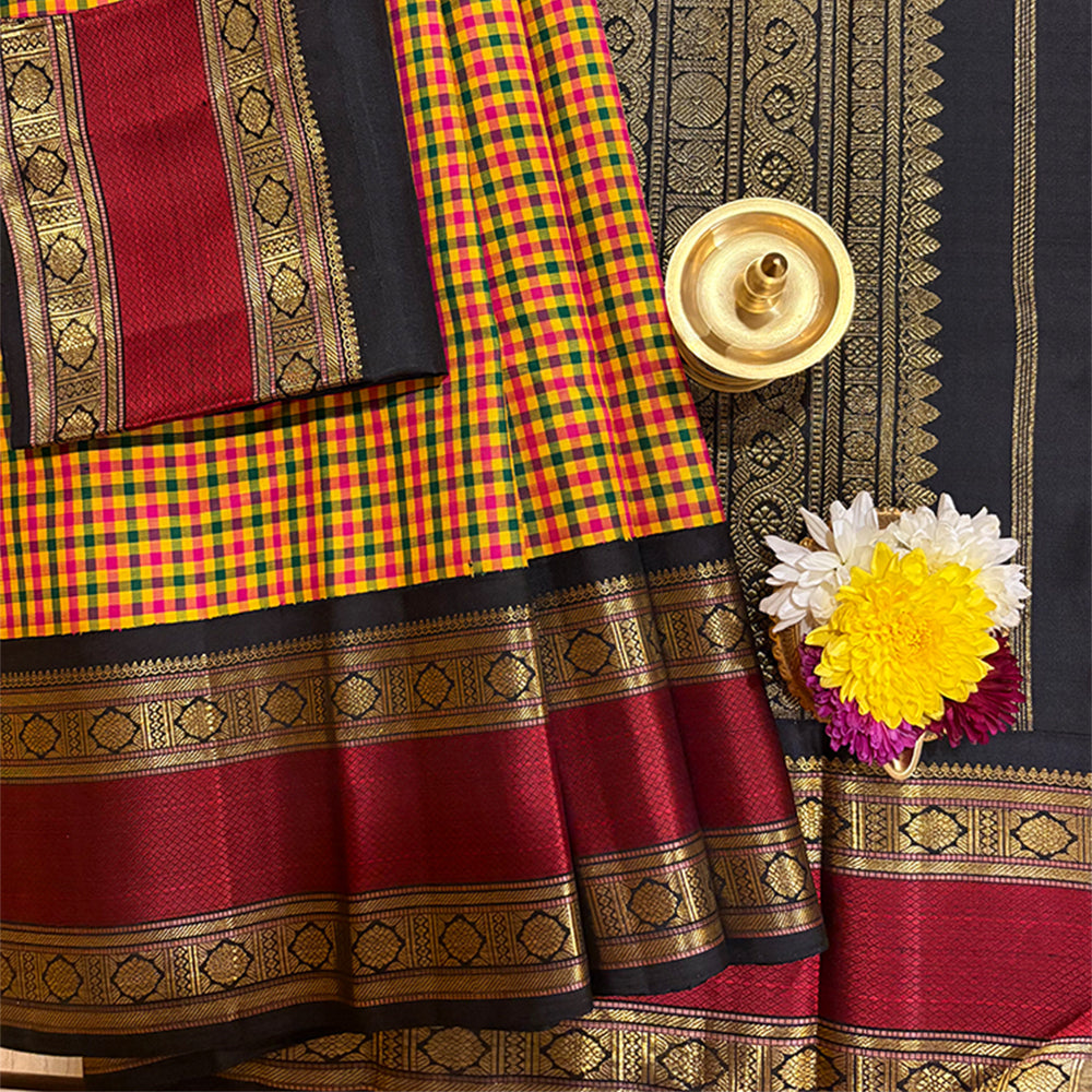 Sampanga Korvai Kanjivaram Handloom Silk Saree with Kanchana Border - RK0363
