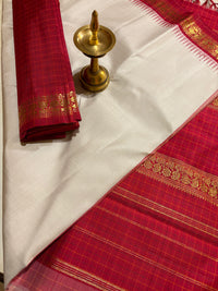 Cream Small Border Korvai Kanjivaram Handloom Silk Saree with Arakku border - RK0399