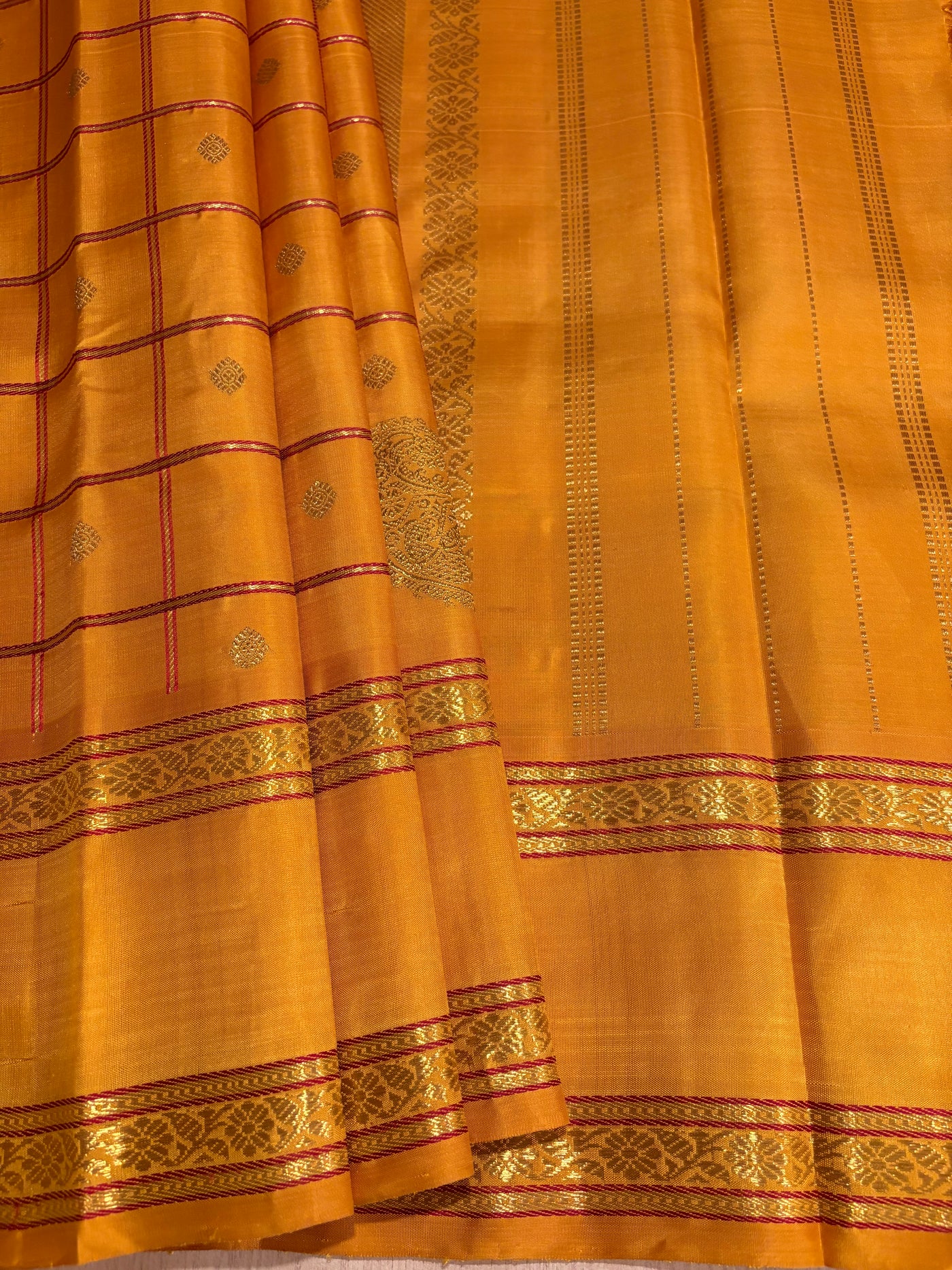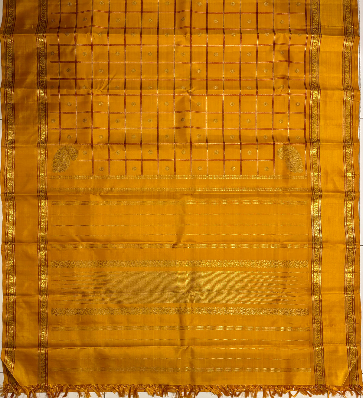 Golden Mustard Veldhari Kattam Monotone Kanjivaram Silk Saree - RK0555