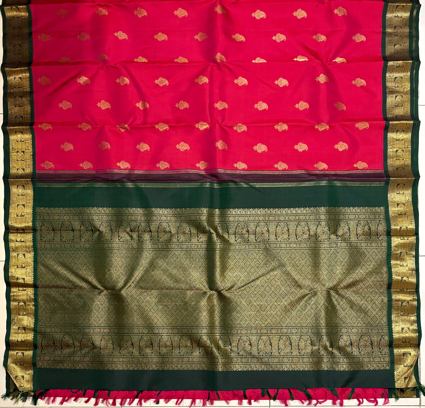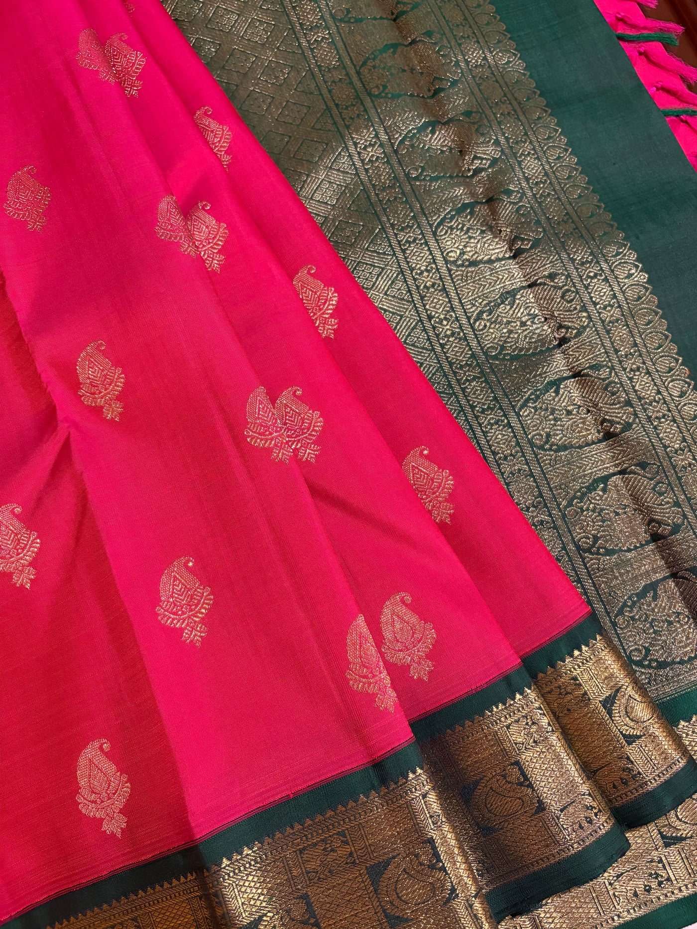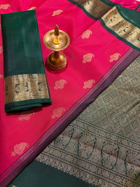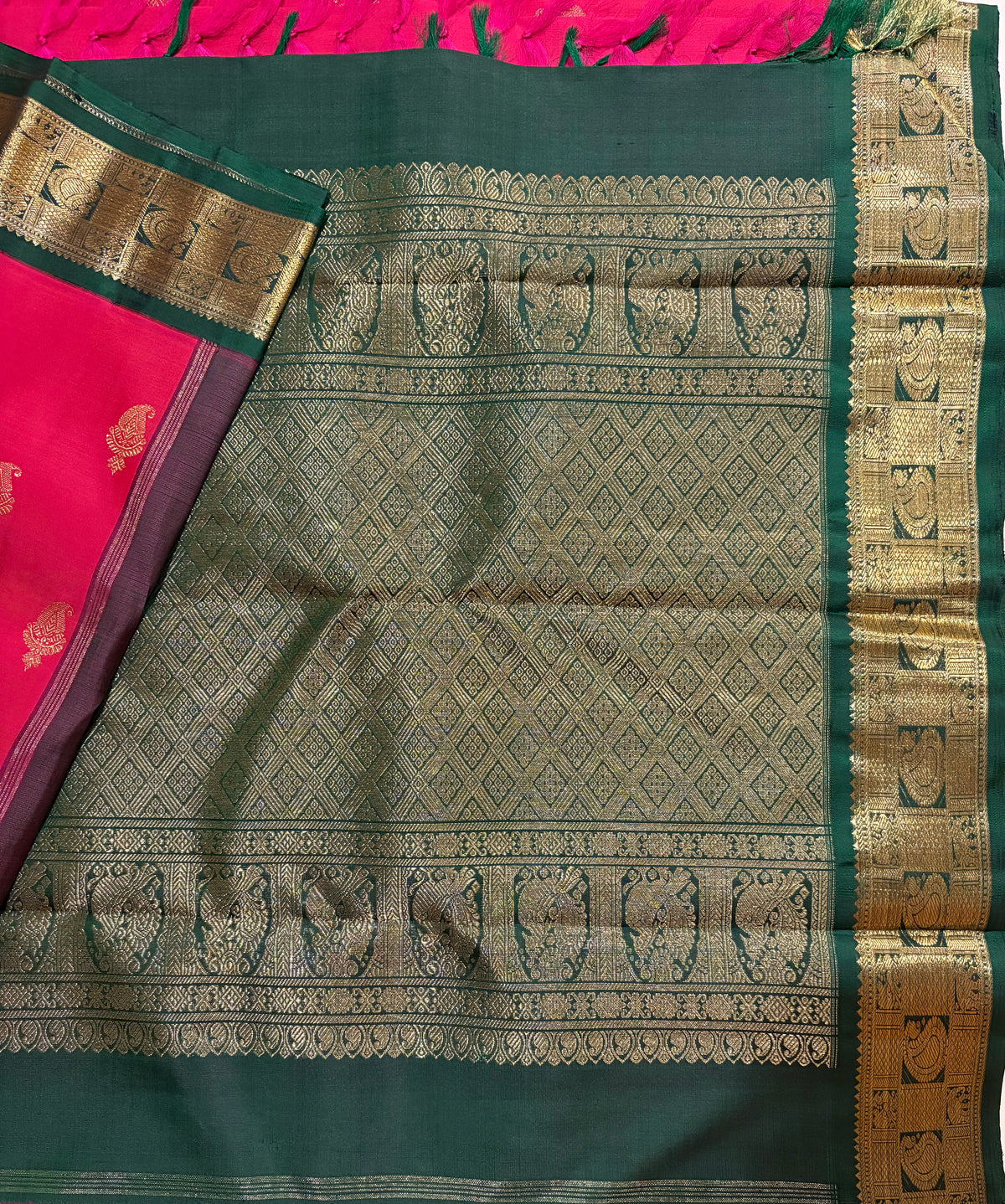 Reddish Pink Korvai Handloom Kanjivaram Silk Saree with dark Green border - RK0194