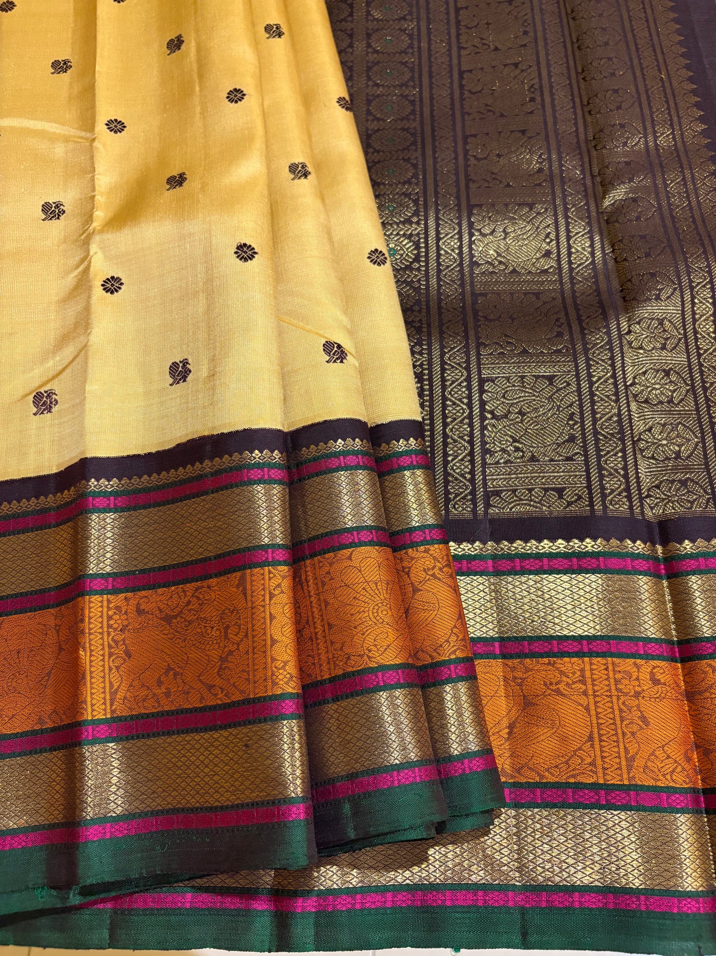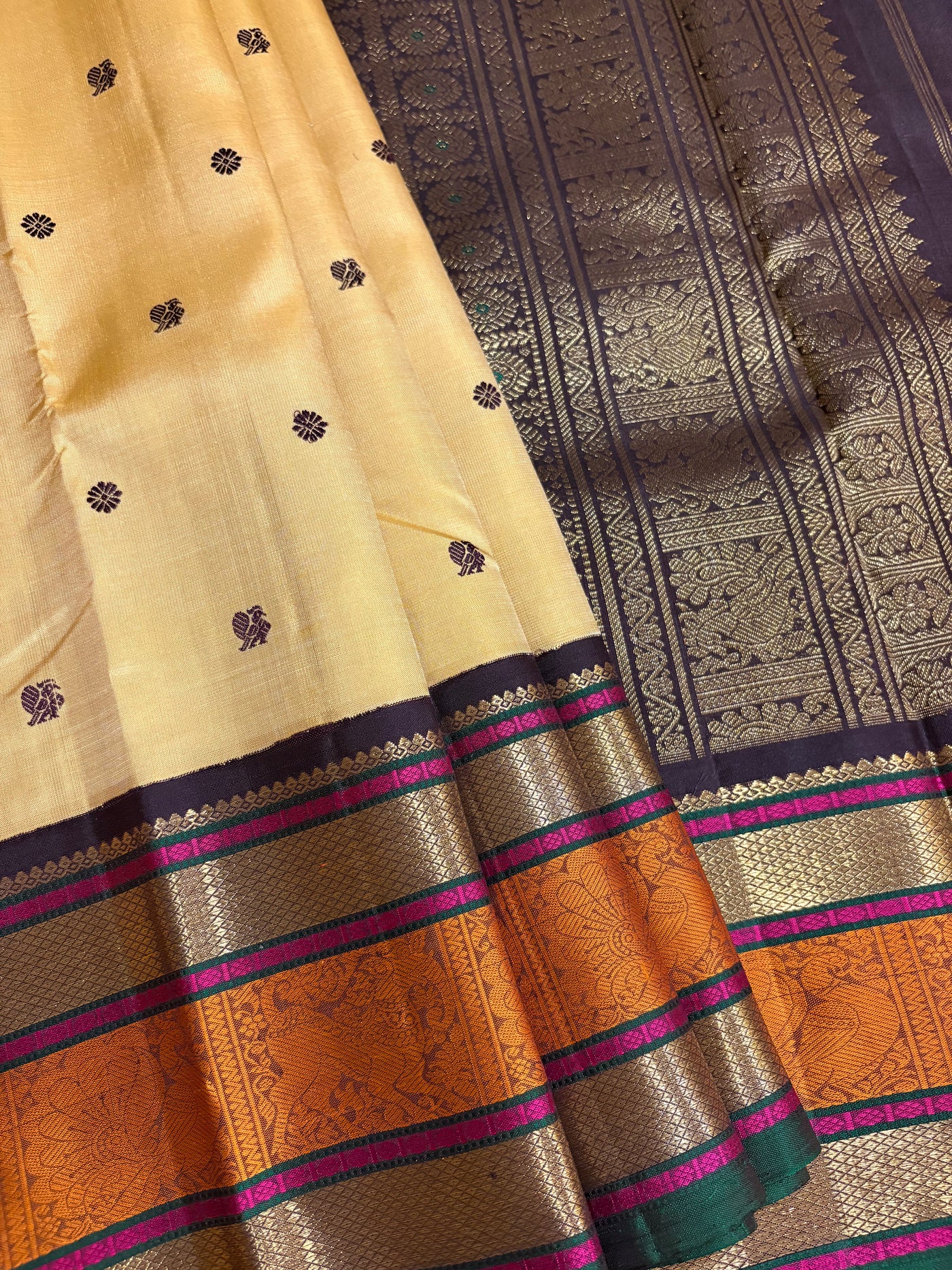 Beige Korvai Kanjivaram Silk saree with Kanchana Double Border RK0354