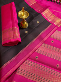 Dark Kanchana/black Korvai Kanjivaram Silk Saree with Candy Rose border - RK0556 - RK0556