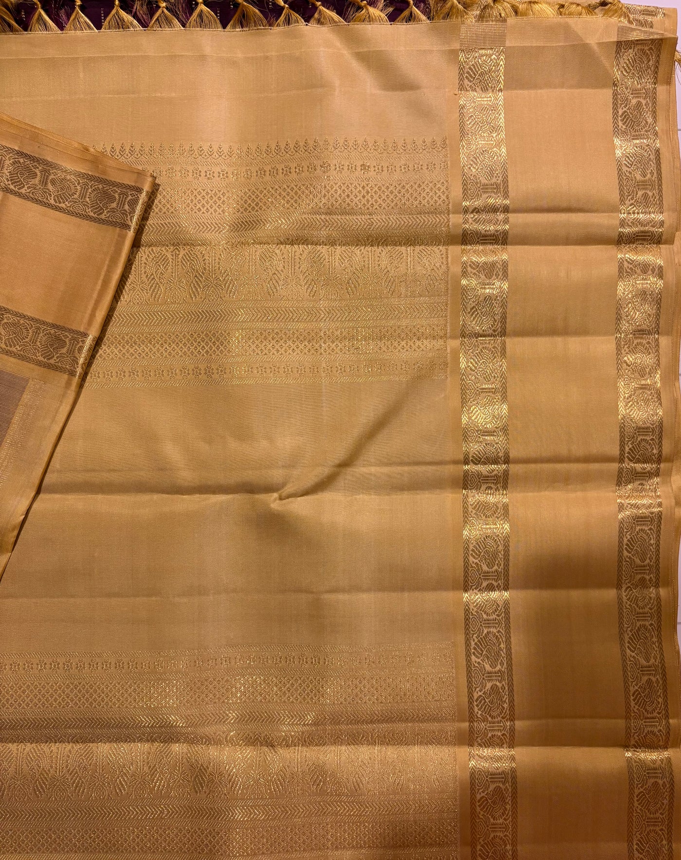 Paaku colour Korvai Kanjivaram Silk Saree with Chandanam Border RK0496