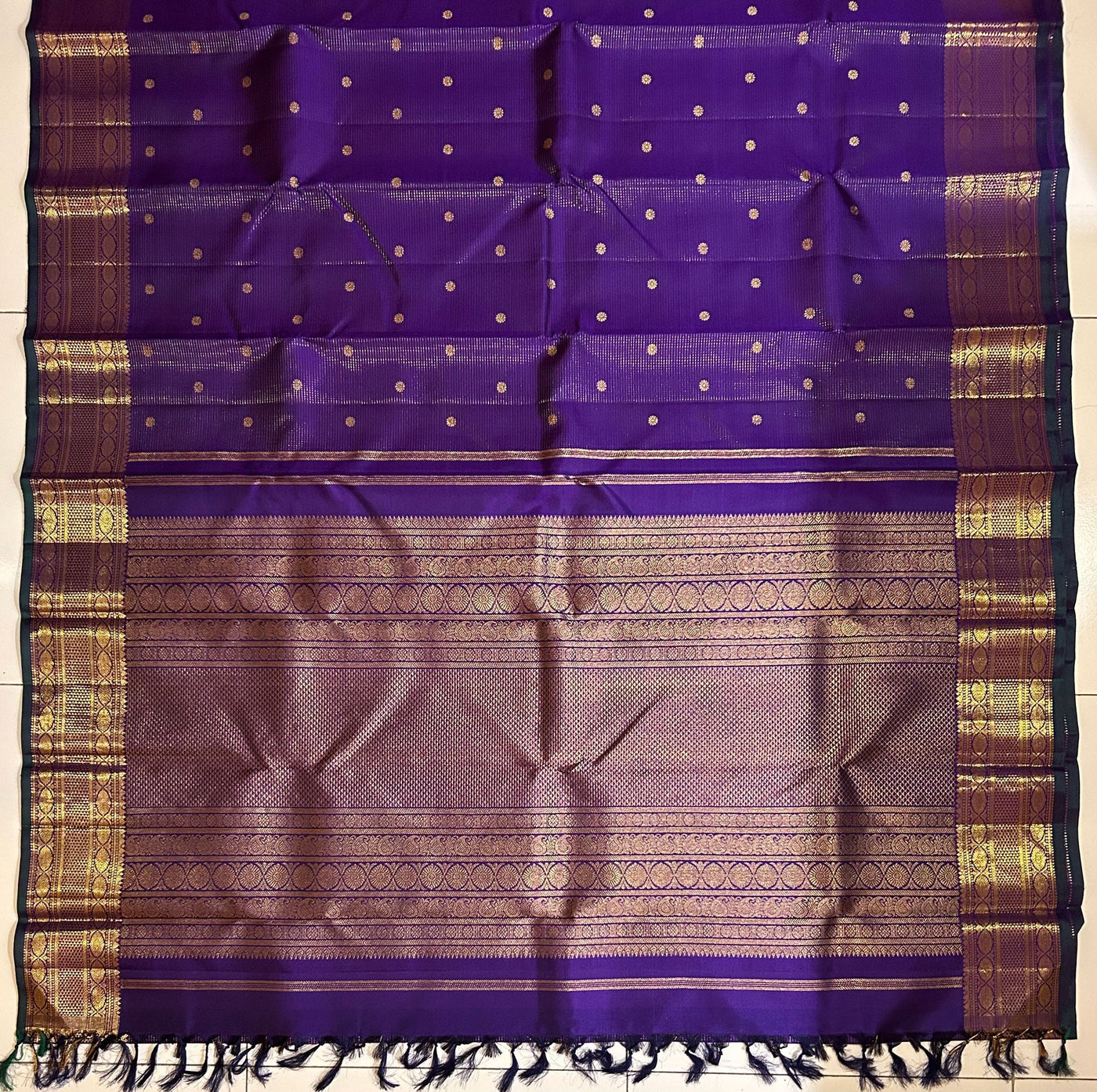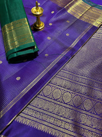 Deep Purple Kambi Vaira Oosi Kanjivaram Silk Saree with Selvedge Green - RK0107