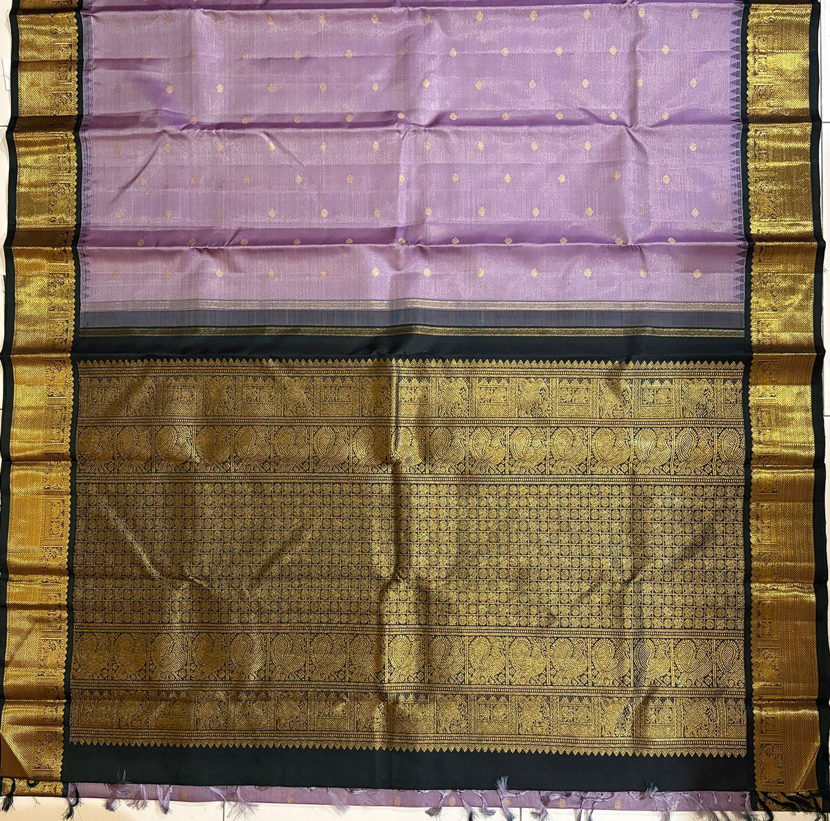Lavender Vaira Oosi Kanjivaram Silk Saree with Dark Green Border - RK0336